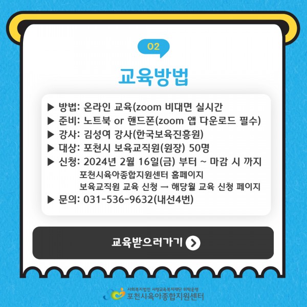 | 교육일정 | 2024-03-20 14:00 ~ 17:00 (총 교육시간 : 180분) | ||