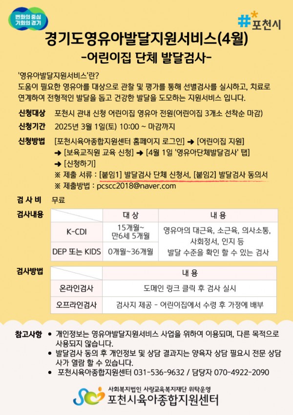 ▶ 신청방법: 포천시육아종합지원센터 홈페이지에서 신청가능