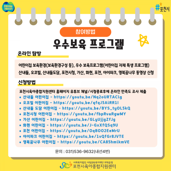 포천시육아종합지원센터 2025년 우수보육프로그램 온라인 탐방 안내입니다.