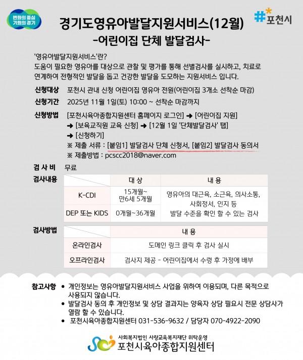 ▶ 신청방법: 포천시육아종합지원센터 홈페이지에서 신청가능