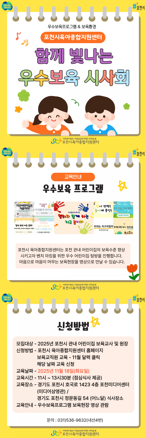 | 교육대상 | 2025년 포천시 관내 어린이집 보육교사 및 원장 | ||