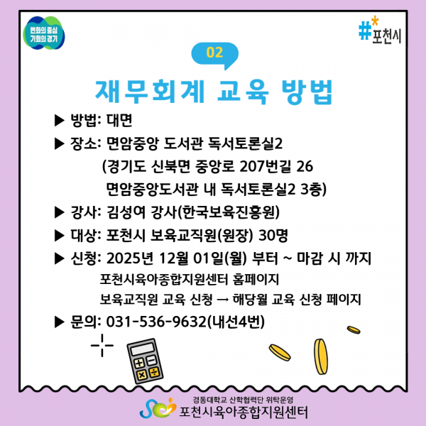 | 교육주제 | 어린이집 재무회계 교육 - 2026년 보육사업개정 및 예산 | ||