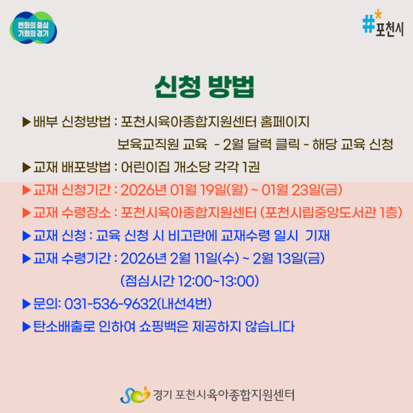 | 장소 | 면암중앙 도서관 내 1층 포천시 육아종합지원센터 | ||