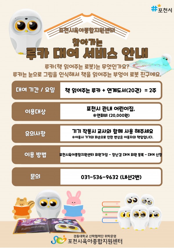 포천시육아종합지원센터에서 책 읽어주는 로봇 루카와 책(20권)을 대여합니다.