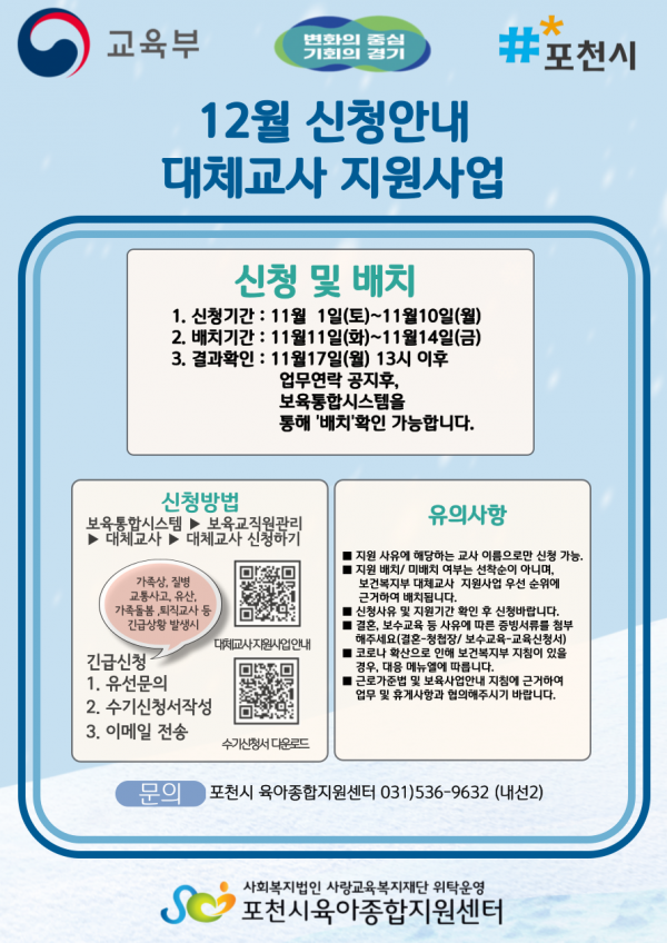 2025년 12월 대체교사 지원사업 신청안내입니다.