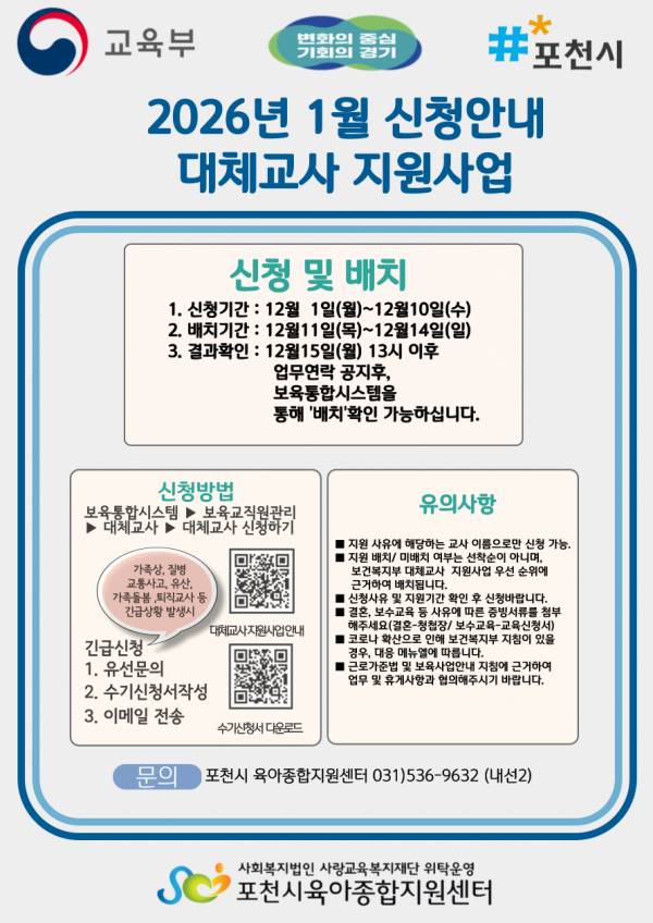 2026년 1월 대체교사 지원사업 신청안내입니다.