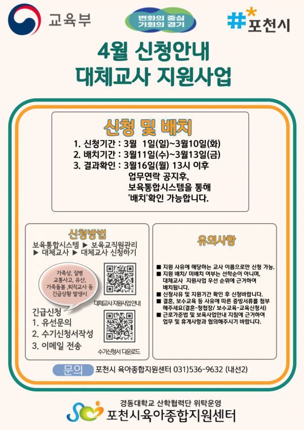 2026년 4월 대체교사 지원사업 신청안내입니다.