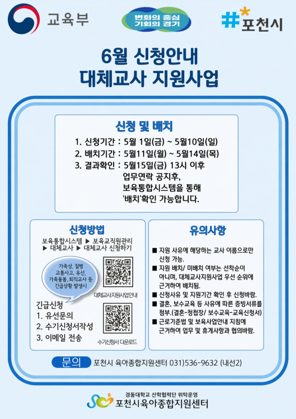 2026년 6월 대체교사 지원사업 신청안내입니다.