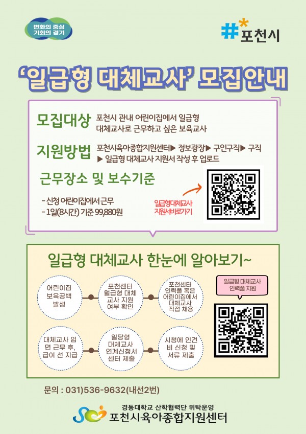 2026년 일당형 대체교사 인력풀 지원신청안내