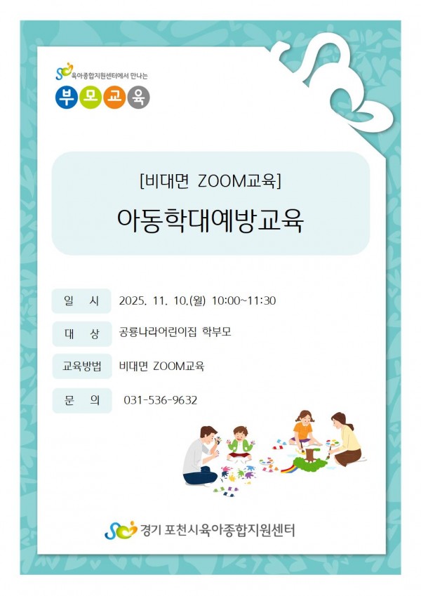 | 교육대상 | 공룡나라어린이집 학부모 | ||