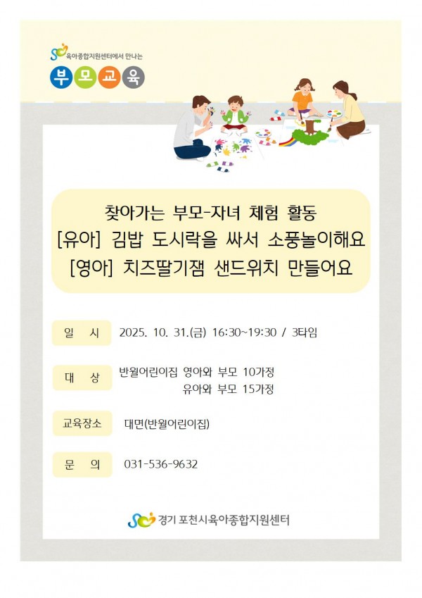 | 교육대상 | 반월어린이집 부모와 자녀 | ||