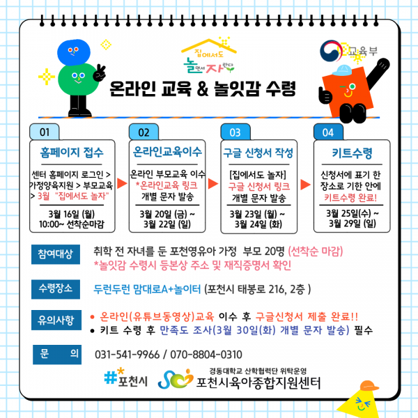 | 교육대상 | 취학 전 자녀를 둔 포천영유아 가정 부모20명 | ||