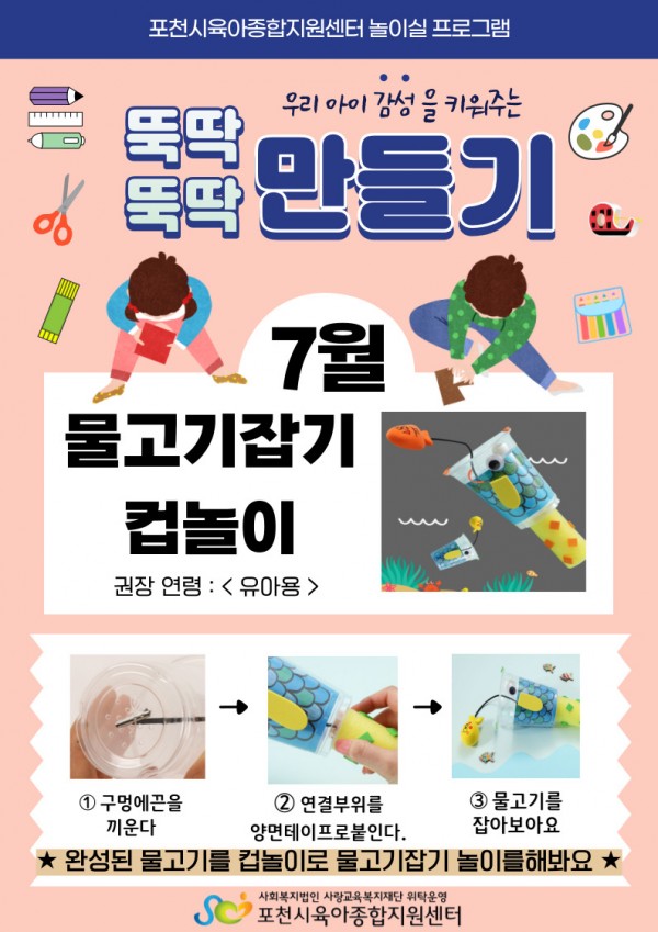 7월 부모와 뚝딱뚝딱 만들기(영아-비치백만들기, 유아-물고기잡이컵놀이)