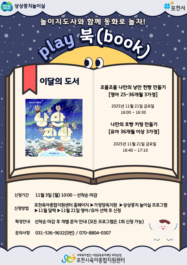| 장소 | 포천시육아종합지원센터(면암 중앙도서관) 1층 상상뭉치놀이실 | ||||