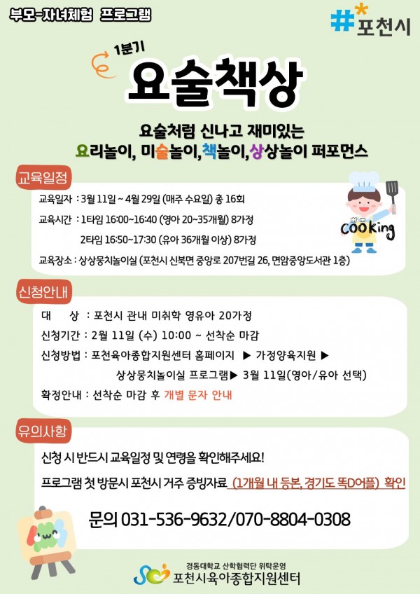 | 장소 | 상상뭉치놀이실(포천시 신북면 중앙로 207번길 26, 면암중앙도서관 1층) | ||||