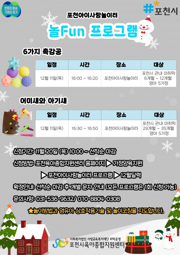 ▷모집대상 : 포천시 관내 6개월~12개월 영아 5가정