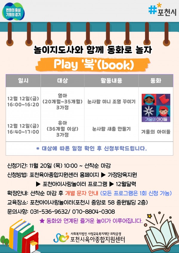 *모집대상: 포천시 관내 미취학 유아 36개월 이상 3가정