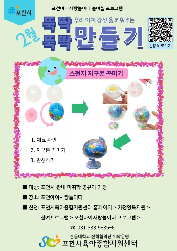 | 대상 | 포천시 관내 미취학 영유아 가정 | ||||