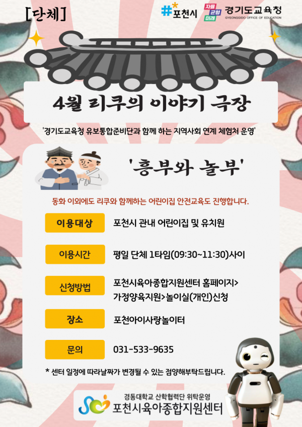 [어린이집 및 유치원] 포천아이사랑놀이터 놀이실 이용 시 수시 접수