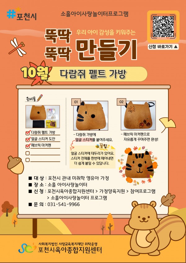 <부모와 함께하는 뚝딱뚝딱 만들기 10월 신청안내>