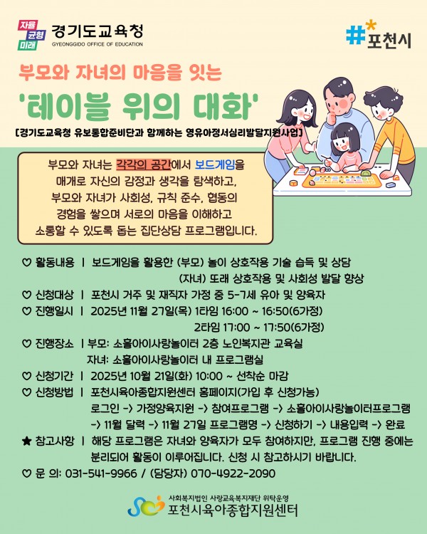 ▶ 신청방법: 포천시육아종합지원센터 홈페이지에서 신청가능