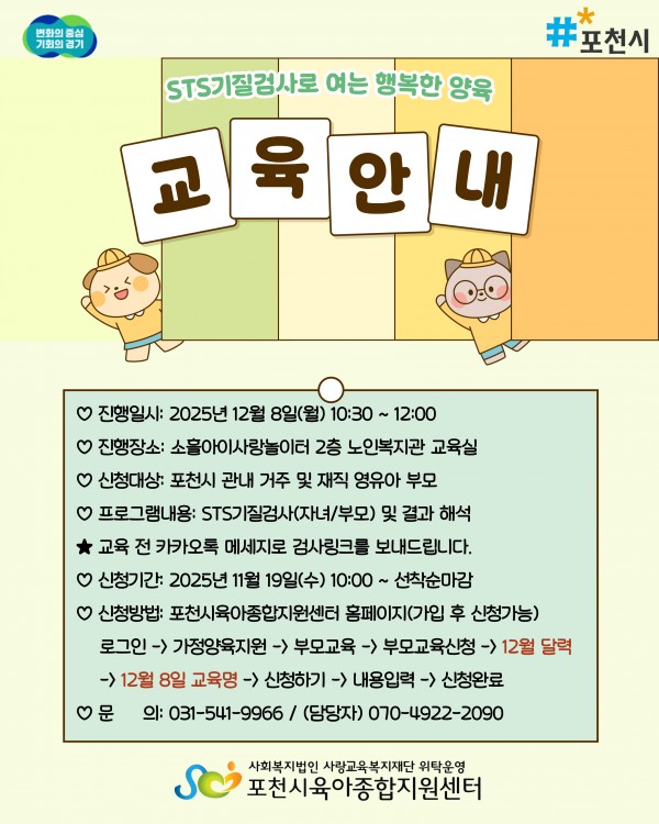 ▶ 신청방법: 포천시육아종합지원센터 홈페이지에서 신청가능