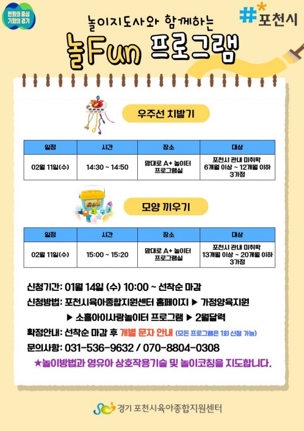 ▷모집대상 : 포천시 관내 13개월~20개월 영아 3가정