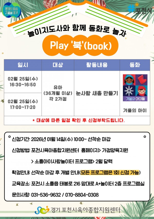 [놀이지도사와 함께 동화로 놀자 'Play 북' 프로그램 안내]