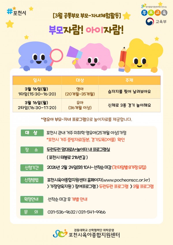 | 대상 | 포천시 관내 거주 미취학 영아(20개월~35개월) | ||||
