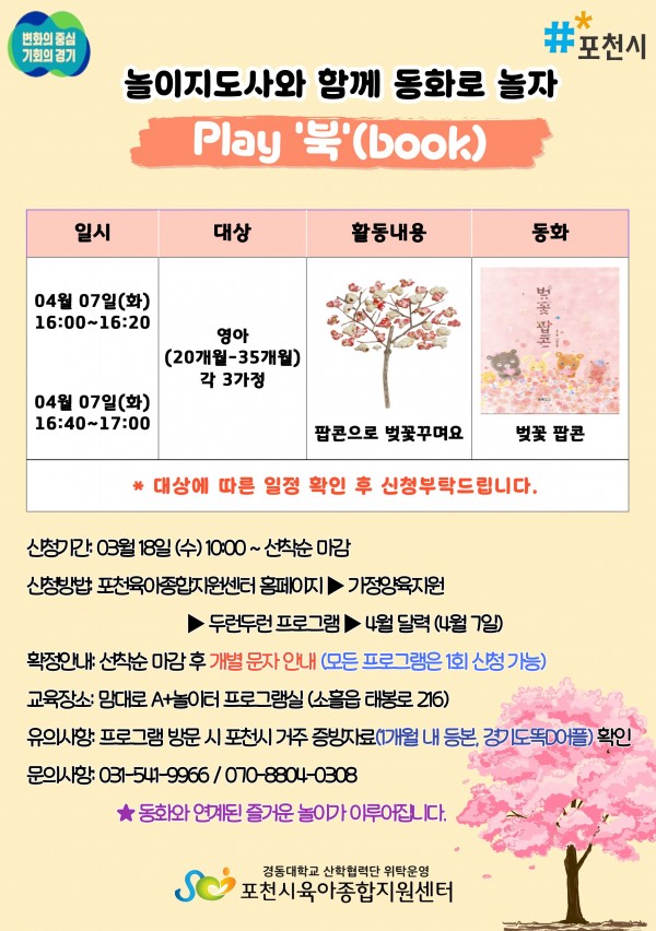 [놀이지도사와 함께 동화로 놀자 'Play 북' 프로그램 안내]