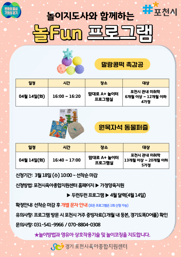 ▷모집대상 : 포천시 관내 6개월~12개월 영아 4가정