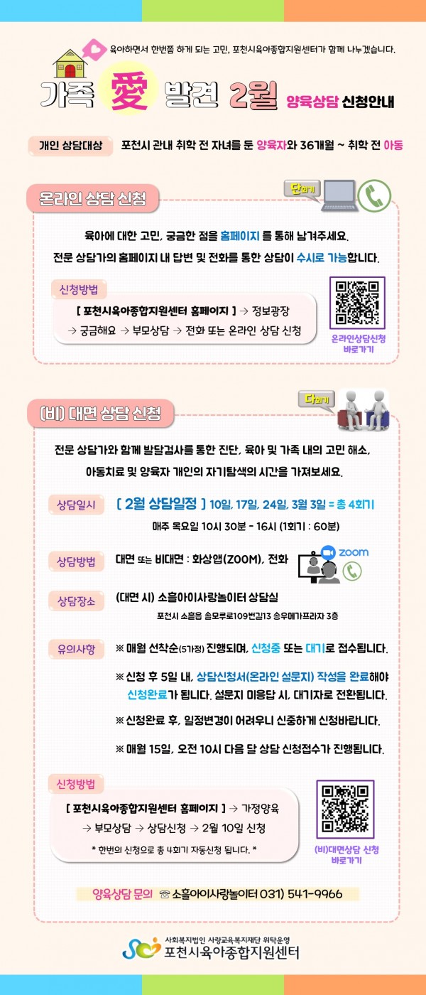 | 장소 | 소흘아이사랑놀이터 상담실 및 온라인 플랫폼 | ||||