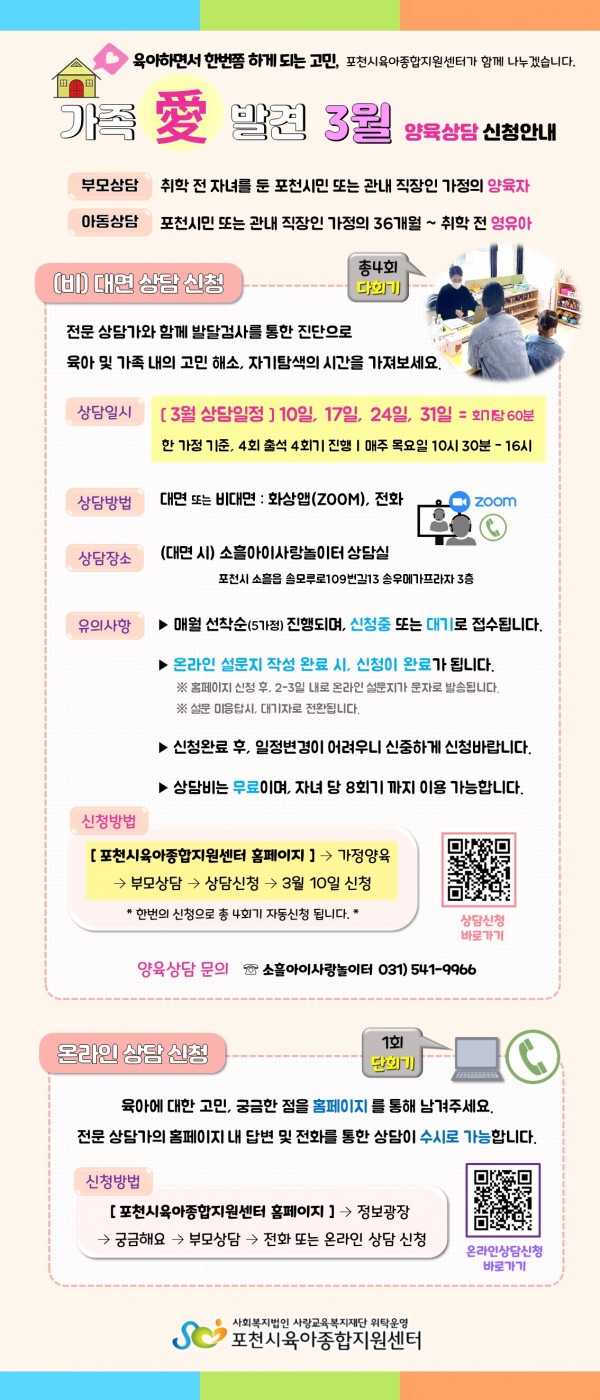 | 장소 | 소흘아이사랑놀이터 상담실, 전화, 온라인 플랫폼 | ||||