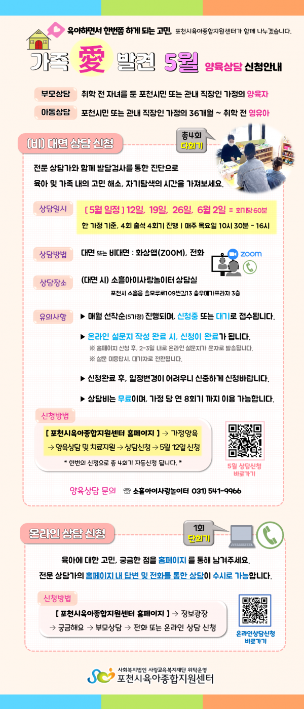 | 장소 | 소흘아이사랑놀이터 상담실, 전화, 온라인 플랫폼 | ||||