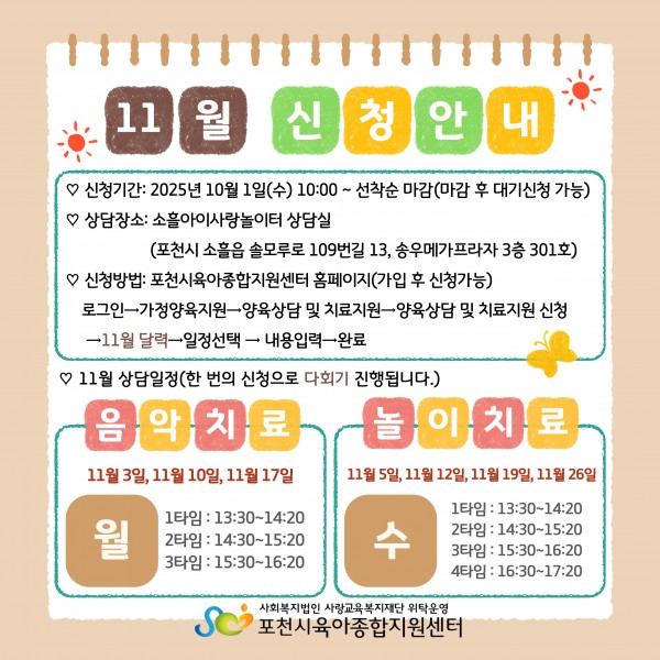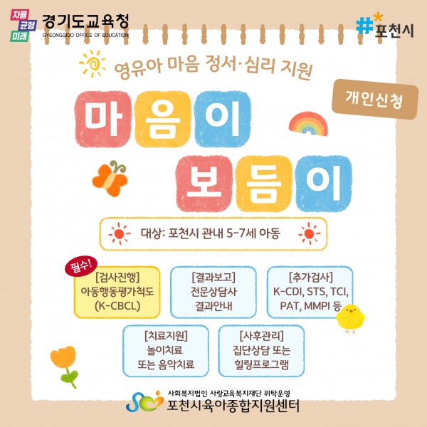 ▶ 신청방법: 포천시육아종합지원센터 홈페이지에서 신청가능