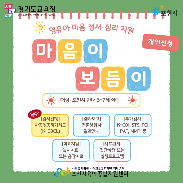 ▶ 신청방법: 포천시육아종합지원센터 홈페이지에서 신청가능