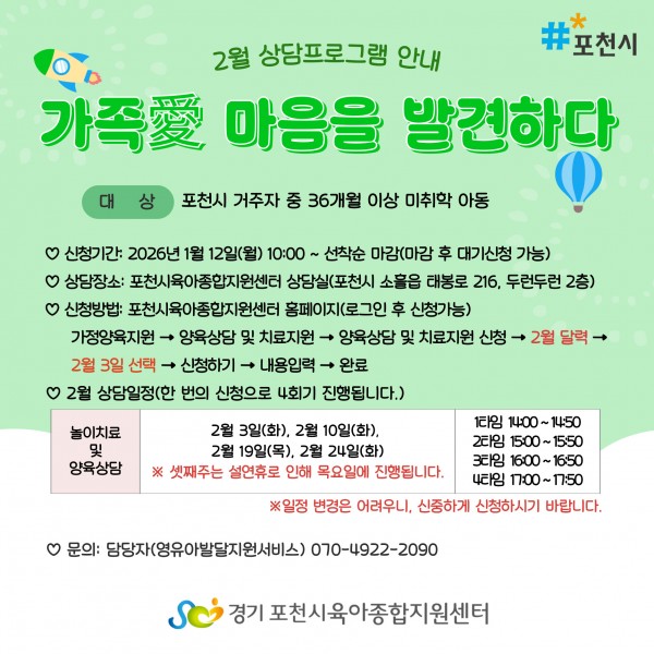 ▶ 신청방법: 포천시육아종합지원센터 홈페이지에서 신청가능