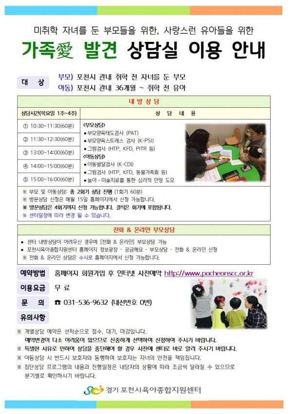 | 장소 | 포천시육아종합지원센터 상담실 | ||||