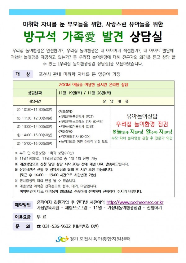 | 대상 | 포천시미취학자녀를 둔 부모 및 영유아 | ||||