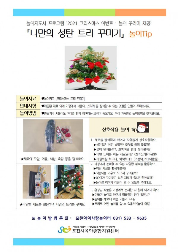 ▶ 크리스마스 이벤트 참여 시, 제공 된 놀이꾸러미의 놀이팁입니다.
