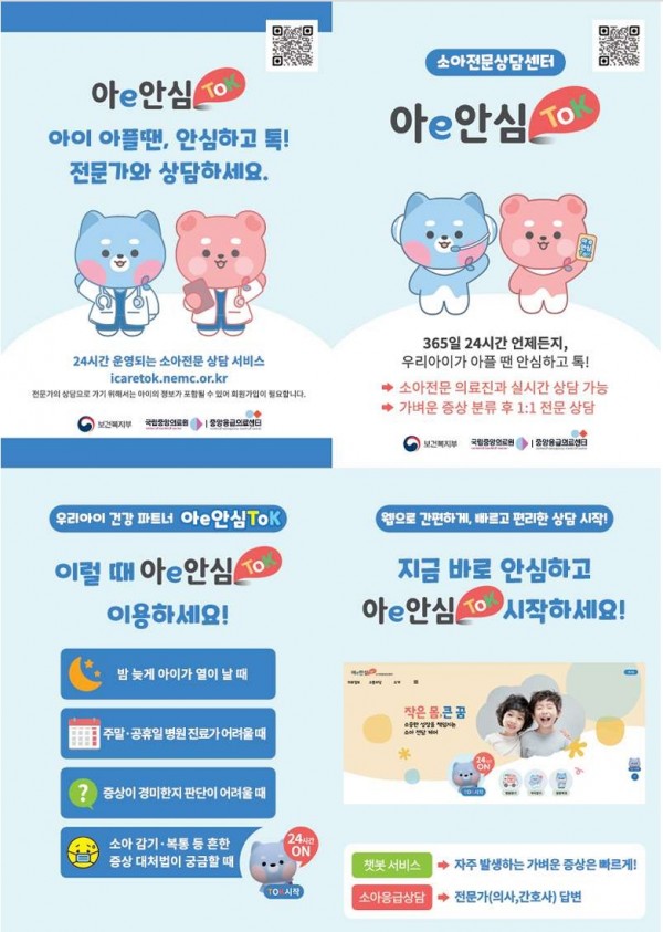 추석 등 연휴기간 「응급똑똑 앱, 아이안심톡 온라인 플랫폼」 이용 안내