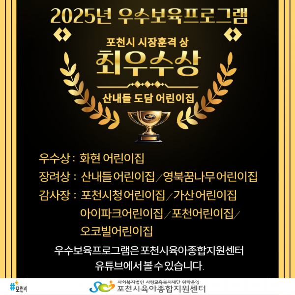 2025년 포천시육아종합지원센터 우수어린이집 보육프로그램 공모전 심사 발표 결과