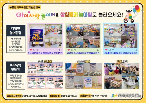 상상뭉치놀이실 & 포천아이사랑놀이터 & 소흘아이사랑놀이터 운영 안내입니다.