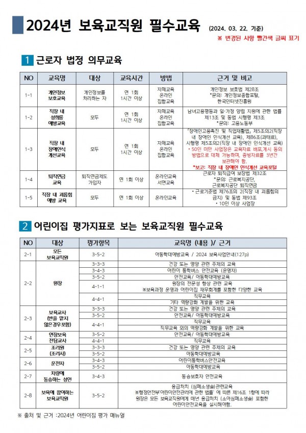 [안내] 2024년 보육교직원 필수교육 (2024.03.22.기준)