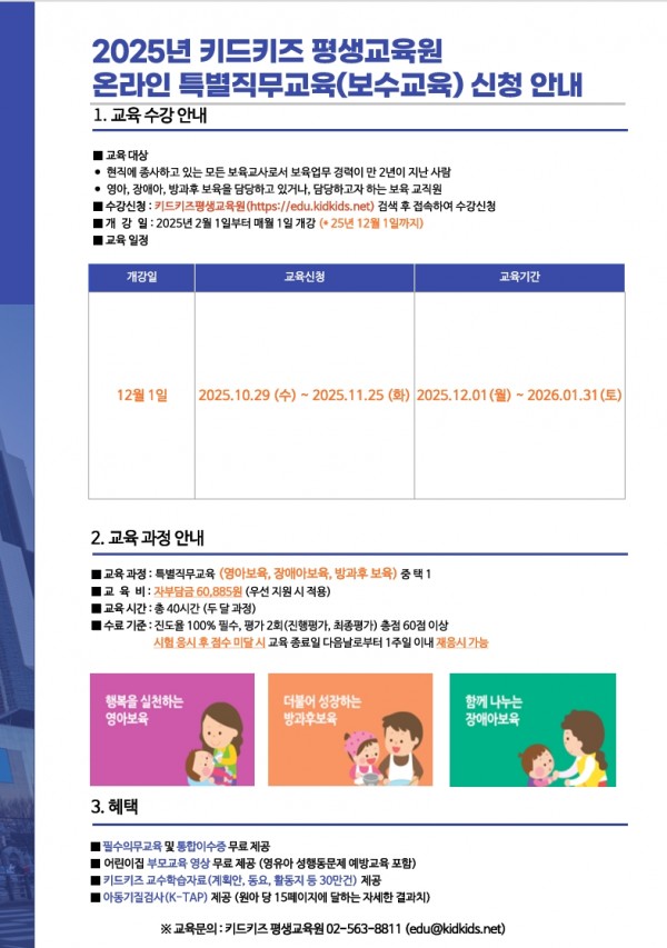 [안내] 2025년 키드키즈 평생교육원 온라인 특별직무교육(보수교육) 신청 안내