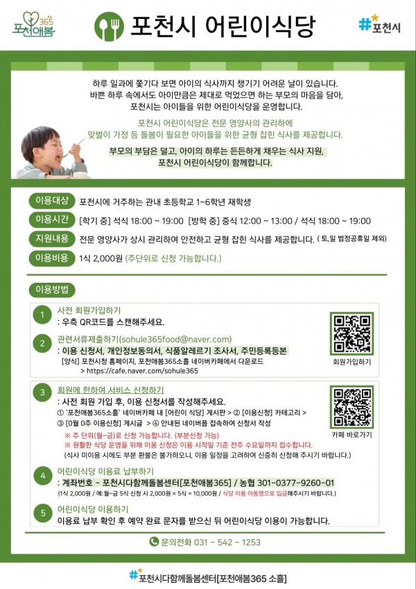 [포천애봄 365] 포천시 어린이식당 운영 안내