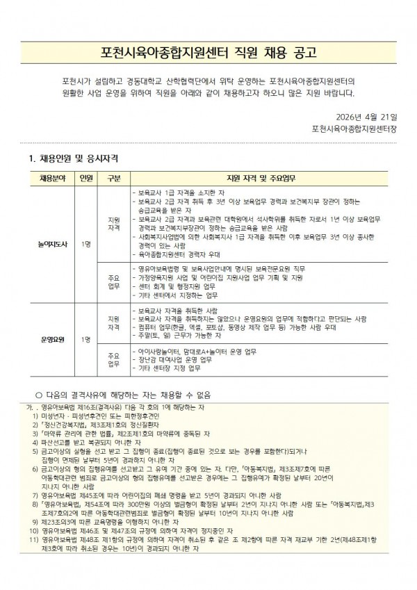 1.포천시육아종합지원센터 직원놀이지도사운영요원 채용 공고2026.04.21001.jpg