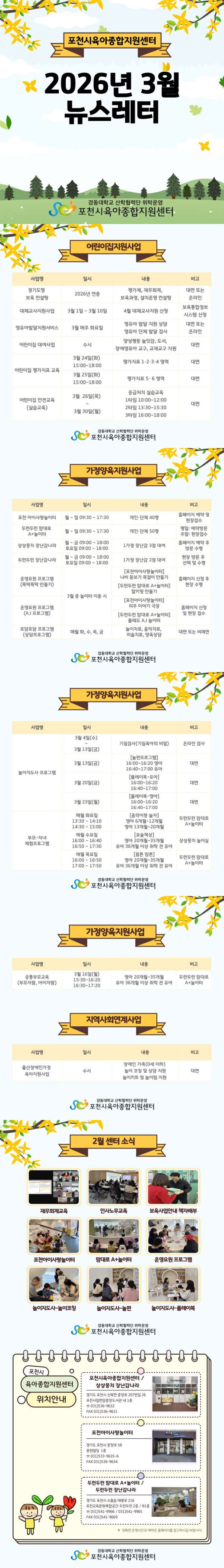 [포천시육아종합지원센터] 2026년 3월 뉴스레터 페이지 정보 작성자 포천센터 조회83회 댓글0건 목록 관련링크 본문 [포천시육아종합지원센터] 3월 뉴스레터 댓글목록 등록된 댓글이 없습니다. 목록