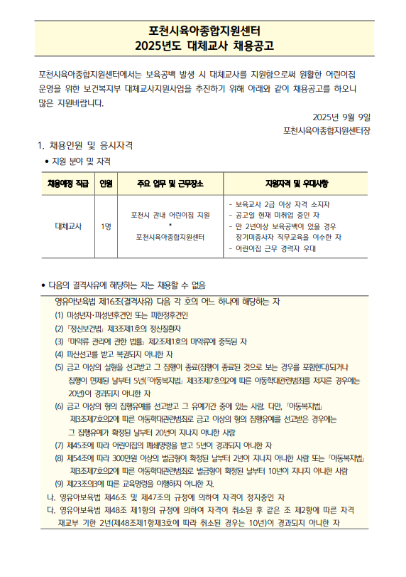 DATE : 2025-09-09 14:11:52 포천시육아종합지원센터 대체교사채용공고 1.png